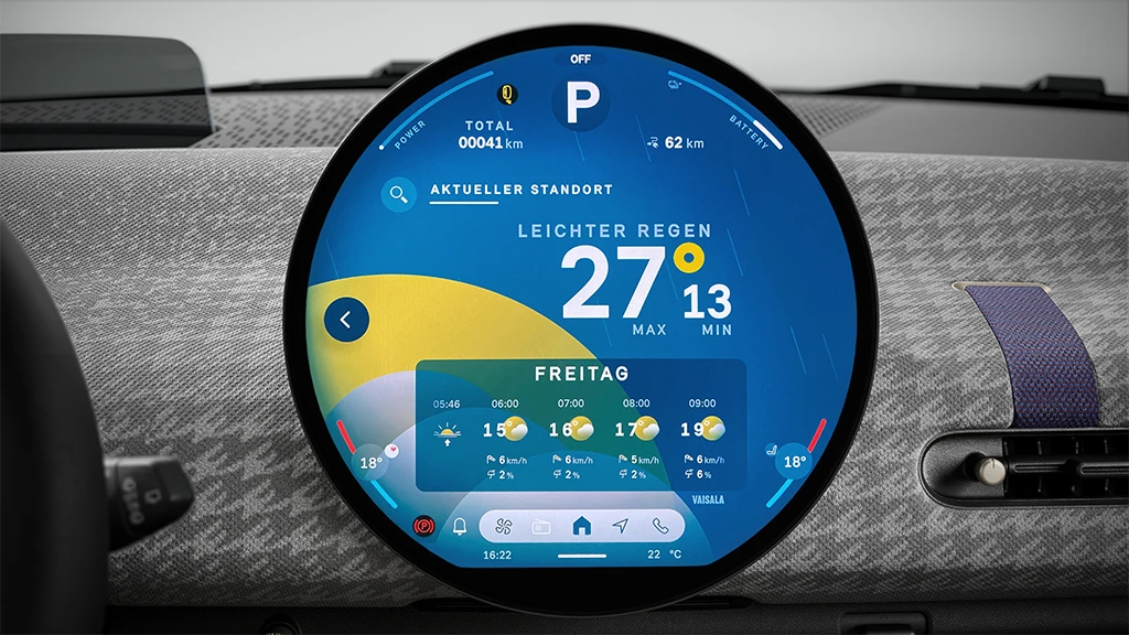 The iconic, 240 mm centre display in high-quality glass is your instrument cluster and onboard infotainment and assistance hub. It also happens to be the world’s first-ever circular display.