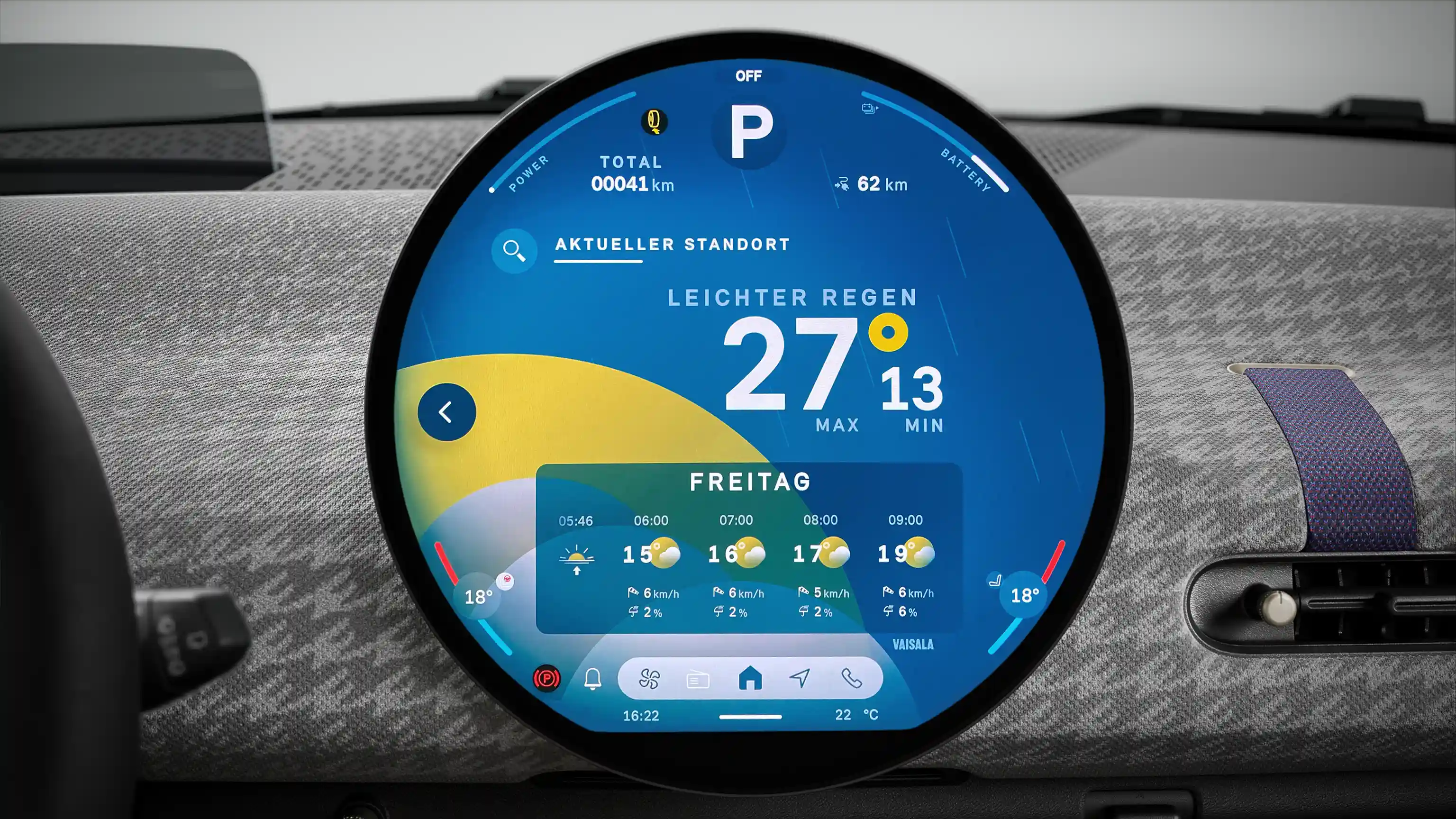 The iconic, 240 mm centre display in high-quality glass is your instrument cluster and onboard infotainment and assistance hub. It also happens to be the world's first-ever circular display.